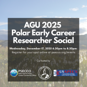 Join other polar early career researchers at the American Geophysical Union Meeting in New Orleans, LA on Wednesday, December 17, 2025, from 6.30pm to 9pm CDT to network, learn about how to get involved in PSECCO, Polar Impact and USAPECS, and eat delicious NOLA food! Space is limited at this event to the first 100 people who register.